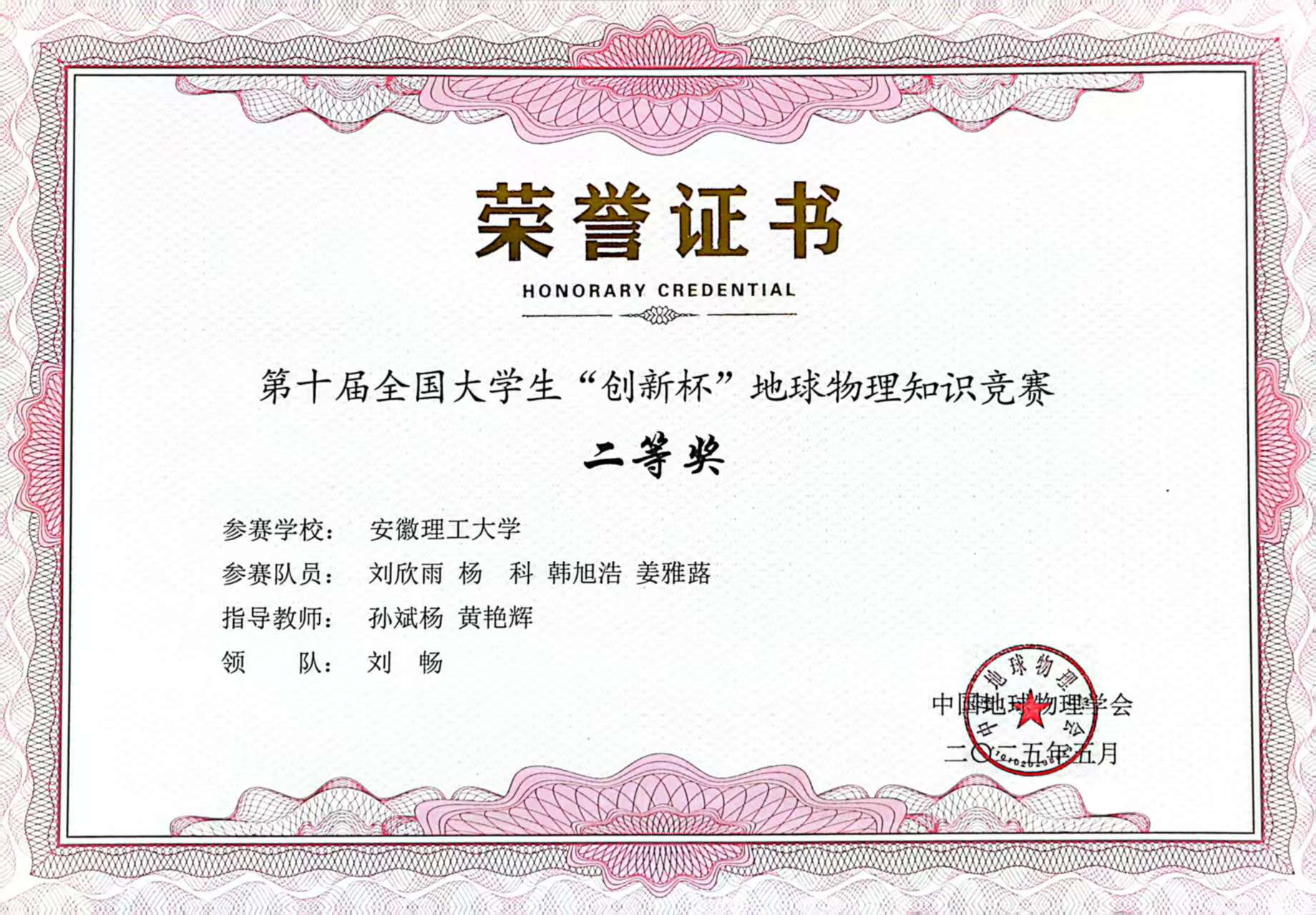 “创新杯”地球物理知识竞赛是由中国地球物理学会和教育部高等学校地球物理学类专业教学指导委员会主办的全国一级学会赛事,每年举办一次,大赛已经成为地球物理勘探领域的品牌赛事。举办竞赛的目的是进一步推动地球物理学科的发展及全国各高校之间的相互交流与学习,探索地球物理专业创新人才培养及教育教学模式,提升学生的整体素质和综合运用地球物理专业知识的能力。