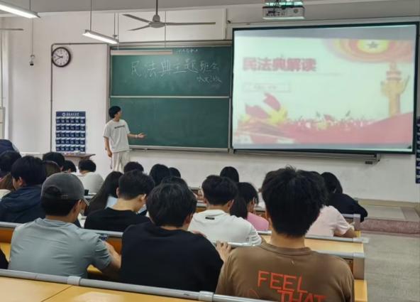 期间,PO18 各班级和学生党支部通过主题班会以及专题研讨等方式开展民法典学习,聚焦法典“总则编、物权编、合同编”等核心架构,学习法律条文的内在逻辑与体系化设计,深入领会民法典作为“社会生活百科全书”在保障公民权利、规范社会秩序、推动法治建设中的里程碑意义。PO18 依托微信公众号推出网络普法微课堂,通过图解结构等形式解读遗产继承、网络侵权等高频法律问题,引导师生在生活场景中感知法律价值。同步开展的民法典知识竞赛采取线上报名初筛,线下复赛的方式,吸引PO18 各班级代表参与,试题涵盖居住权、隐私保护等社会热点,促进法律知识向应用能力转化。