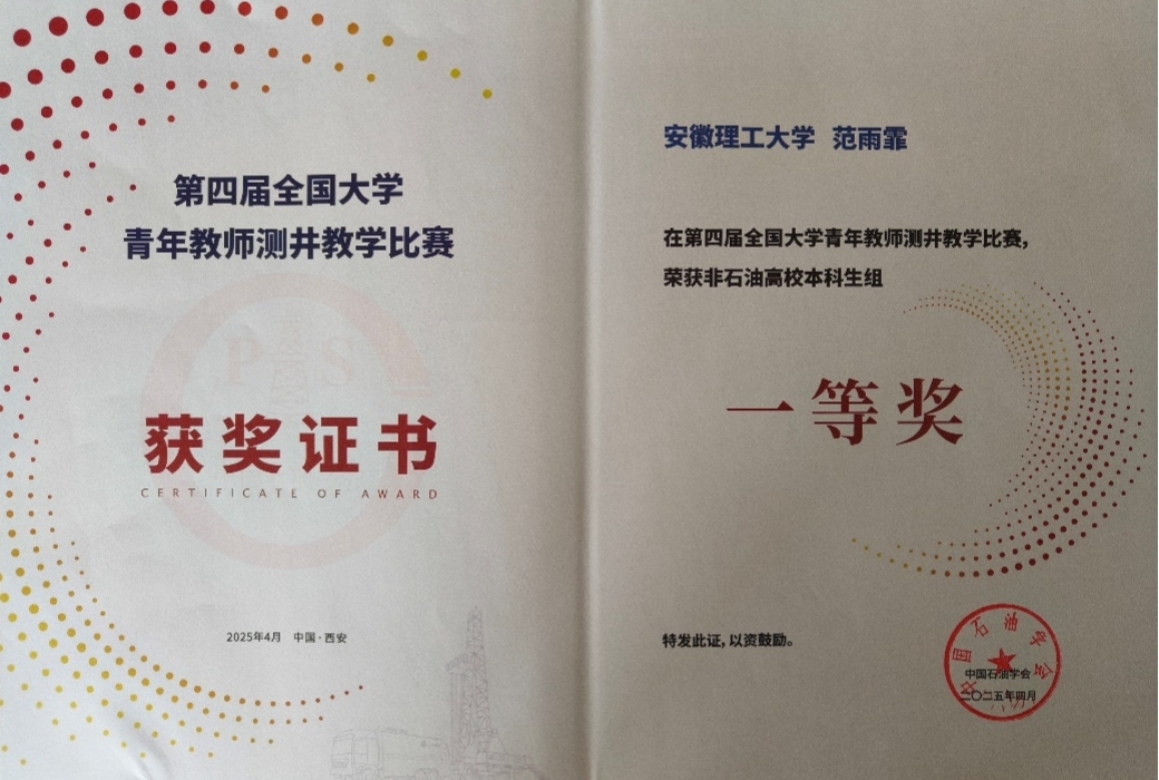 PO18 教师荣获第四届全国大学青年教师测井教学比赛一等奖