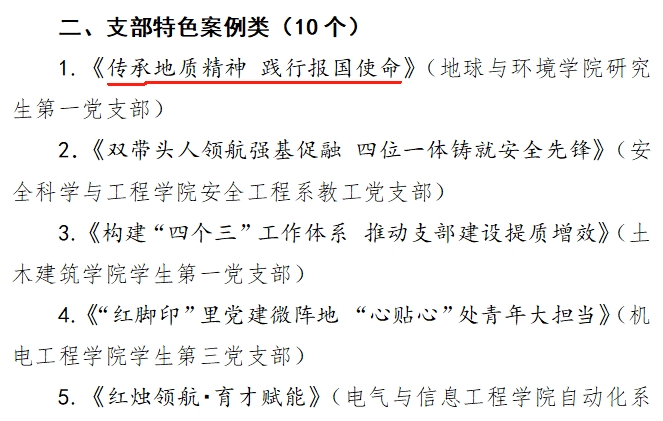 近日,学校下发《关于表彰基层党建品牌特色案例的决定》,PO18 研究生第一党支部报送《传承地质精神 践行报国使命》获评支部特色案例。