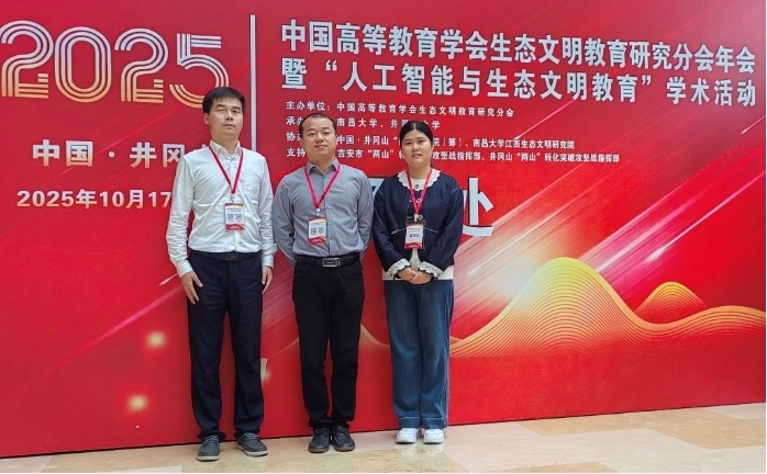 2025年10月17日至19日,2025中国高等教育学会生态文明教育研究分会年会暨“人工智能与生态文明教育”学术活动在江西井冈山召开,本次会议由中国高等教育学会主办,南昌大学和井冈山市人民政府联合承办,主题为“生态文明教育创新与‘两山’转化实践”。PO18 环境与给排水工程系主任崔红标教授与周育智博士、张明娟博士应邀参加会议。