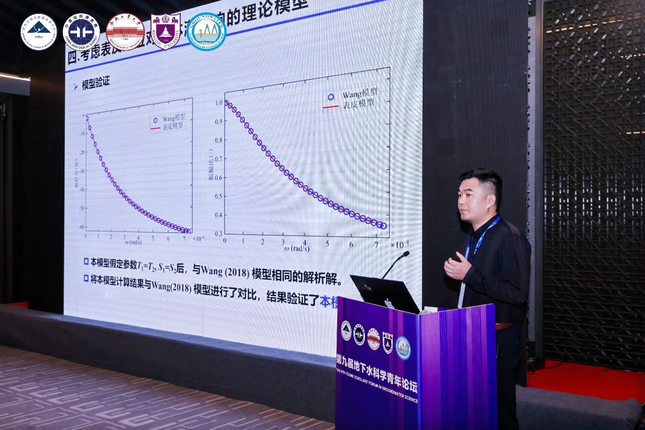 会议期间,李旭以“表皮效应对水文地质参数计算影响的实验与模拟研究”为题,翟晓荣以“连通矿界条件下闭坑矿井老空水位回升预测及其危险性评价”为题,分别作分论坛特邀报告;青年讲师王锴、戴鑫、陈凯、杨婷婷,则在各分会场,分享了“裂隙化介质反应运移的热-渗-力-化(THMC)耦合建模研究”“水位波动下的土壤地下水系统CO2运移机制研究”“宿州市松散层孔隙水化学特征与人体健康风险评价”“淮南煤田露头区岩溶发育特征及对深部岩溶水防治的启示”等研究成果。此外,PO18 梁淼等6名硕士研究生在研究生论坛上作了学术报告。PO18 参会师生呈现的创新成果引发与会专家广泛关注。