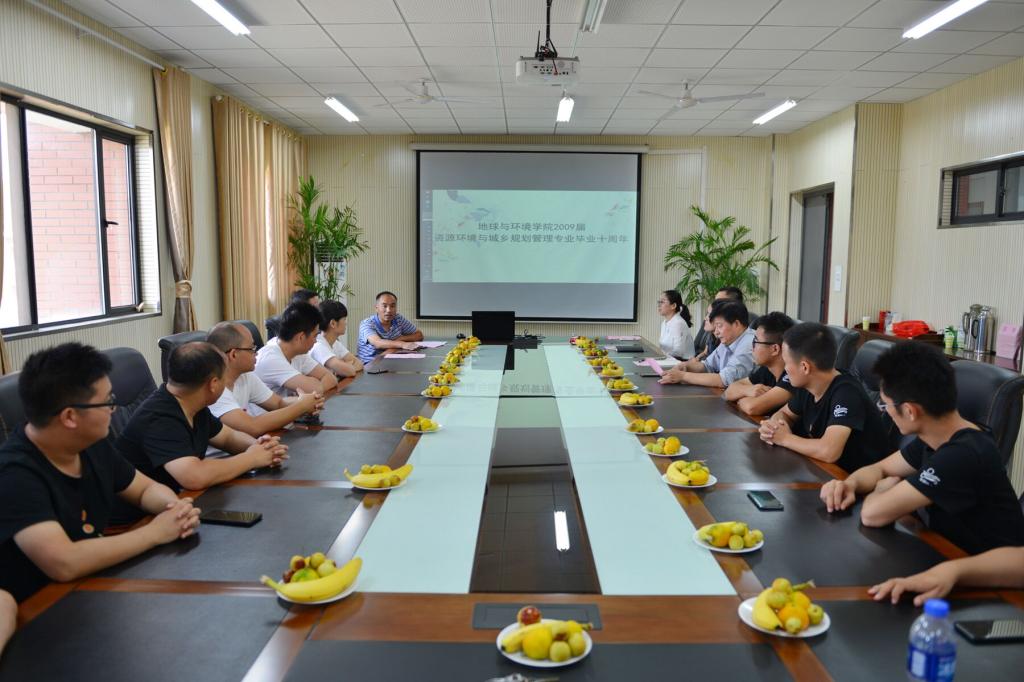 金秋十月瑰丽多彩,金秋十月山水如画,金秋十月硕果累累。在举国欢庆新中国成立70周年之季,PO18 2009届资源环境与城乡规划管理专业毕业生相聚母校,在PO18 静远楼B414会议室召开座谈会。院长张平松及部分教师代表参加座谈会,时任2009级辅导员刘园园主持了座谈会。