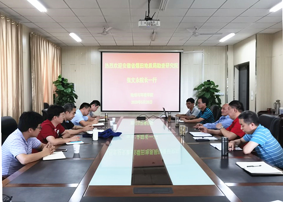 5月28日,安徽省煤田地质局勘查研究院院长张文永一行来校参加产学研合作会议,PO18 党政领导班子、各系主任参加,会议由PO18 副院长(主持)刘启蒙主持。