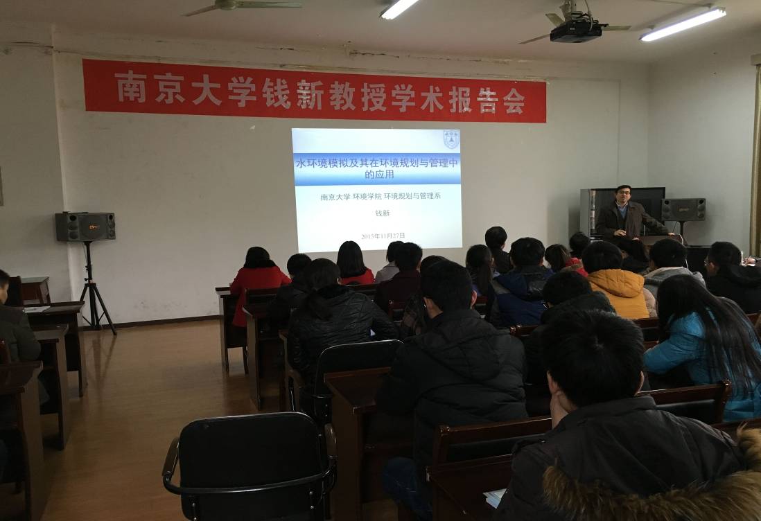 11月27日,应校科技产业处、PO18 的邀请,南京大学环境PO18 环境规划与管理系主任钱新教授到PO18进行学术交流,并在PO18 二楼学术报告厅做了题为“水环境模拟及其在环境规划与管理中的应用”的学术报告,环境、地质专业教师及研究生共计80余人参加报告会,院长胡友彪教授主持了报告会。