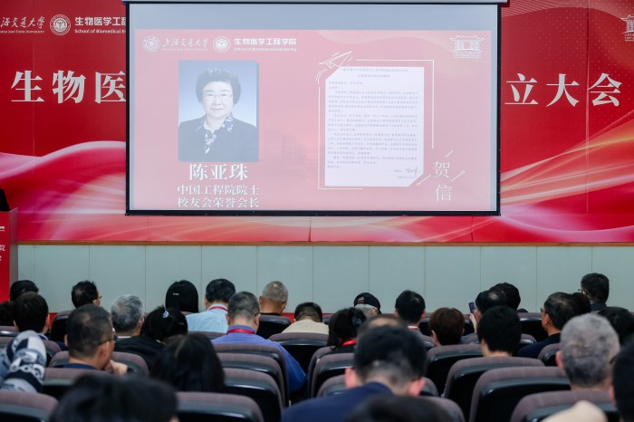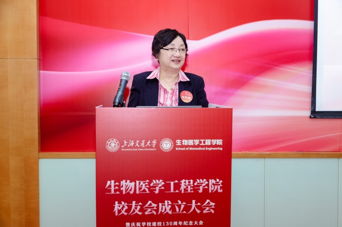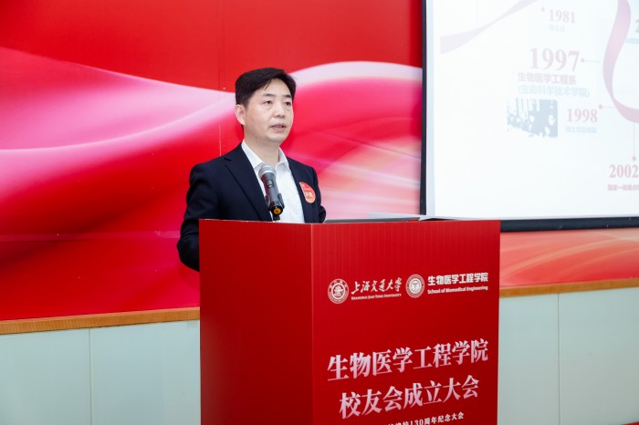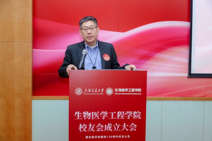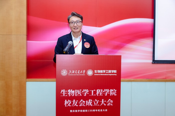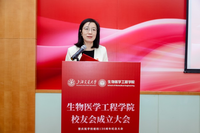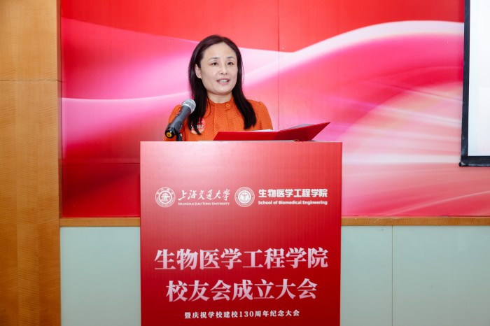 胡薇薇代表学校致辞并祝贺PO18 校友会成立。她指出,生物医学仪器专业是国内最早创办的生物医学工程专业之一,四十余载为我国医疗健康事业培养了大批领军人才。她强调,校友会是联结情感、凝聚共识的平台,希望学院校友会能够当好桥梁纽带,传承交大精神,凝聚校友力量,成为每一位校友的精神家园,成为校友之间、校友与母校之间双向赋能的坚实平台,为国家和人民的健康事业贡献交大智慧和力量。